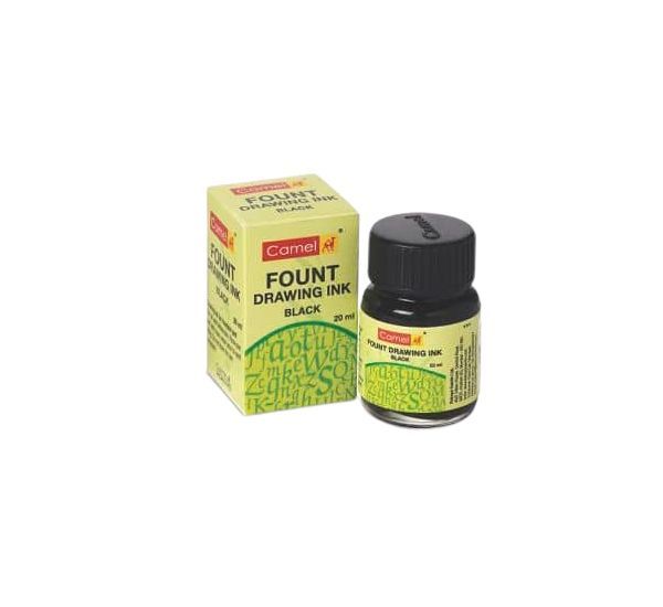 Camel fount drawing ink is a pigment-based, dense jet black ink.