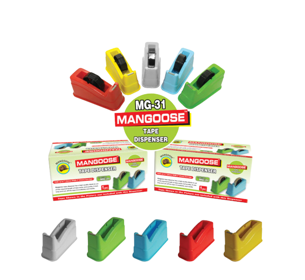 - Mangoose Tape Dispenser has a weighted base that allows for easy one-handed dispensing.